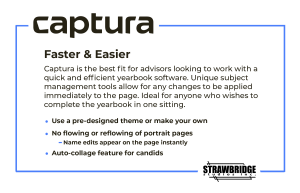 Our Memory Book serves as a wonderful way to capture each school year in full to hold onto forever. Our book has multiple binding and cover options to ensure you can find the best fit for you. We also operate through Captura.