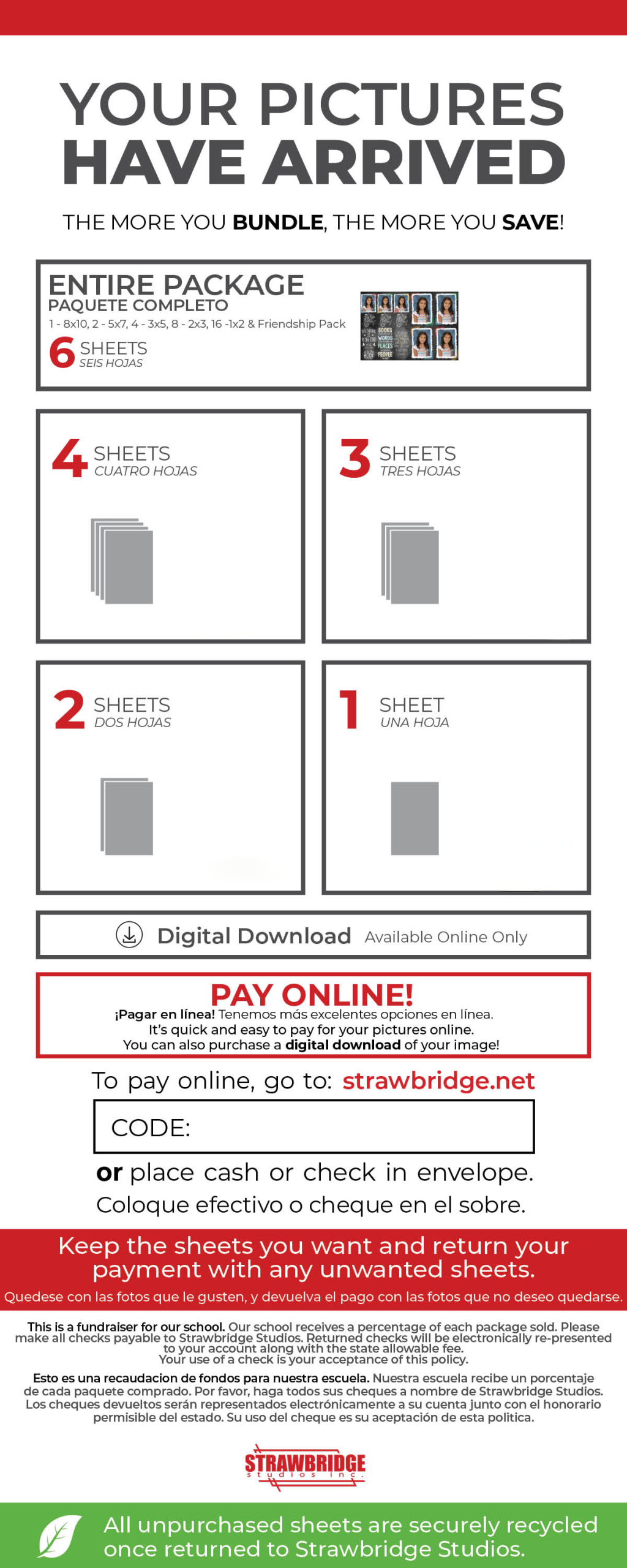 • Pictures are shipped to the school at no charge. *Some schools may choose a ship-to-home only option for a small S+H charge.